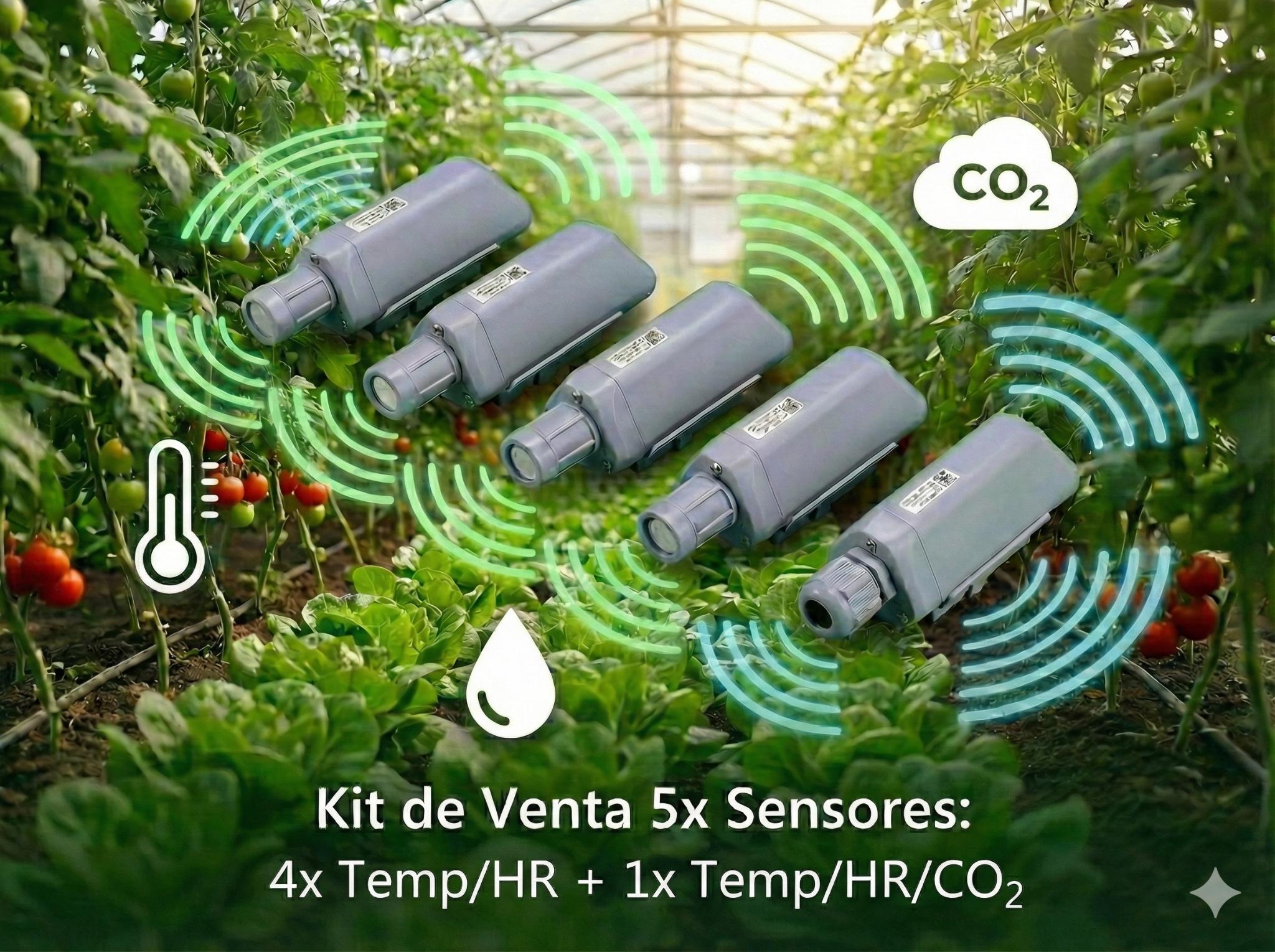 Kit de inicio para monitorización de invernaderos. Incluye: • 4x Sensor S2101 (Temperatura + Humedad) • 1x Sensor S2103 (Temperatura + Humedad + CO₂) Todos los sensores son LoRaWAN con batería de +3 años y alcance de 5km. Plug & play: solo enciéndelos y colócalos. ⚠️ Requiere 1x Gateway LoRaWAN por finca (no incluido). Si es tu primer kit, selecciona la opción "Con Gateway".